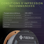 Le filament Fiberon™ PPS-GF20 est conçu pour répondre aux exigences les plus élevées en matière de résistance thermique, de stabilité dimensionnelle et d’isolation électrique. Renforcé à 20 % de fibres de verre, il offre une rigidité et une solidité remarquables, idéales pour des pièces techniques comme des boîtiers électriques, supports de capteurs ou composants structurels dans des environnements industriels et électroniques.