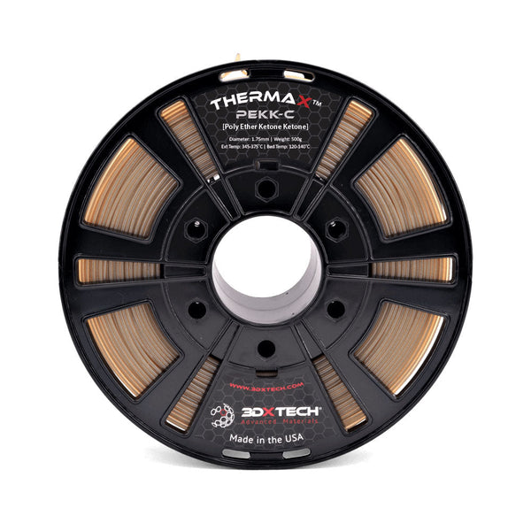 Le filament ThermaX™ PEKK (PolyEther Ketone Ketone) est fabriqué à partir du PEKK Kepstan® d'Arkema. Il est l'un des polymères les plus performants au monde.  Matériau phare de la famille des PAEK, le PEKK présente des propriétés exceptionnelles de résistance mécanique, thermique et chimique, tout en étant nettement plus facile à imprimer que le PEEK.