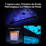 Les 7 lignes parallèle de laser bleu offrent une précision allant jusqu'à 0,02 mm qui permet de capturer les moindres détails et d'obtenir des contours affutés et nets. La caméra d'imagerie 3D fait 2,3 millions de pixels.